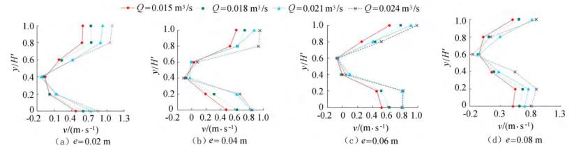 2.2不同來流流量對(duì)斷面流速分布的影響