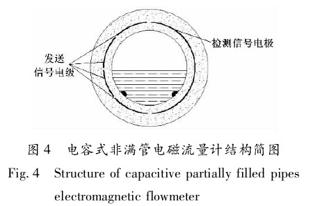 ②電容式非滿管生活污水流量計h。電容式非滿管生活污水流量計結構簡圖如圖4所示。、檢測信號電極  發送信號電