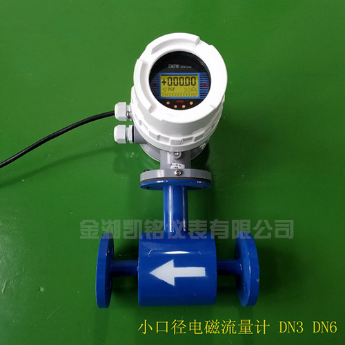 凱銘電磁流量計是以內襯絕緣材料做為非導磁合金短管;兩只電極沿管徑方向穿通壁固定在測量管上,其電極頭與襯里內表面基本齊平。勵磁線圈由雙向方波脈沖勱磁時,將在與測量管軸線垂直的方向上產生一磁通量密度為B的工作磁場;此時,如果具有一定電導率的液體流經測量管,將切割磁力線感應出電動勢E,電動勢E正比于磁通量密度B,測量管內徑d與平均流速V 的乘積。電動勢E(流量信號)由電極檢出并通過電纜送至轉換器。轉換器將流量信號放大處理后,可顯示流體流量,并能輸出脈沖,摸擬電流等信號,用于流量的控制和調節。