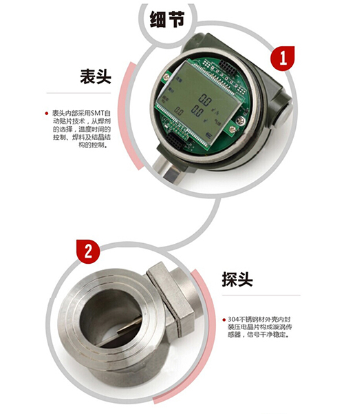 這些交替變化的旋渦就形成了一系列交替變化的負壓力,該壓力作用在檢測探頭上,便產生一系列交變電信號,經過前置放大器轉換、整形、放大處理后,輸出與旋渦同步成正比的脈沖頻率信號或標準信號。