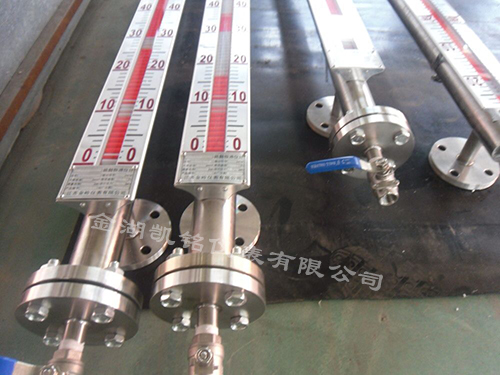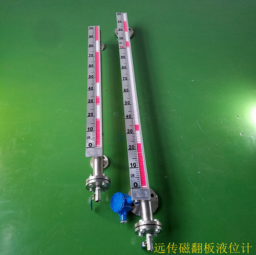 在管體的另一側可按用戶需要加裝電遠傳變送器,將液位高度轉換成標準電流信號輸出,以供液位信號輸出,以供液位信號遠傳至二次儀表進行指示控制與檢測。