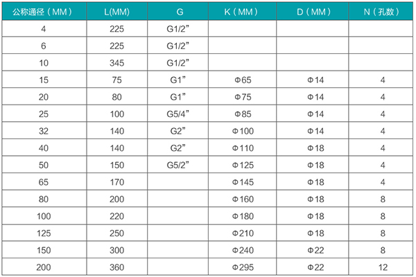 DN4 0.04~0.25 0.04~0.4 螺紋安裝、6.3Mpa 法蘭安裝、2.5MPa 12、16、25