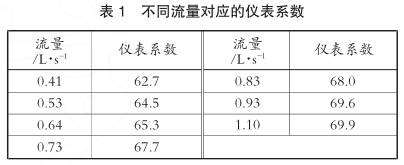 純凈水流量計(jì)中流速對(duì)儀表系數(shù)有著很大的影響,這部分誤差會(huì)極大影響*終計(jì)量的精確度,傳統(tǒng)的做法是當(dāng)流速發(fā)生較大的持續(xù)變化時(shí),需對(duì)純凈水流量計(jì)進(jìn)行重新標(biāo)定。針對(duì)這個(gè)問(wèn)題,在不同流速下,測(cè)量了純凈水流量計(jì)的儀表系數(shù)(見(jiàn)表1)。
