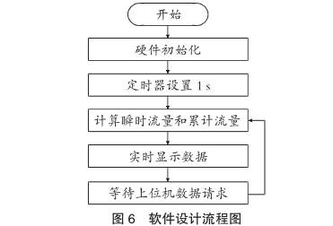 上電后程序?qū)SP的硬件資源進(jìn)行初始化,包括中斷系統(tǒng)、GPIO口、定時(shí)器/計(jì)數(shù)器、通信端口及基本的時(shí)鐘設(shè)置。程序每秒對(duì)接收到的脈沖進(jìn)行計(jì)數(shù),其除以儀表系數(shù)后的結(jié)果作為瞬時(shí)流量,同時(shí)在時(shí)間上對(duì)瞬時(shí)流量進(jìn)行累積,計(jì)算出兩種流量后,將其實(shí)時(shí)顯示在液晶顯示屏上,同時(shí)將數(shù)據(jù)保存,**等待上位機(jī)電腦對(duì)數(shù)據(jù)的讀取。通信采用MODBUS協(xié)議,波特率為9600b/s,無(wú)校驗(yàn),8位數(shù)據(jù)位,1位停止位。圖6為微處理器功能設(shè)計(jì)流程圖。
