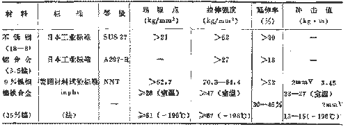 金屬材料在極低溫下的屈服點、拉伸強度、延伸率、節流、沖擊試驗值等機械性質與常溫下有很大不同,在極低溫下,金屬材料的拉伸強度上升,但延展性降低,沖擊值也隨材料而顯著下降。因此,在極低溫下所使用的儀器的材料,應是有充分抗破壞韌性的材料,使之不引起脆性破壞,這些材料就叫做低溫材料。但是,現在使用的*一般的材料有:不銹鋼、鋁合金、90%的鎳鋼、35%的鎳鋼(鎳鐵合金)。表3示出了低溫材料的機械性質。圖3還示出了不銹鋼的恰貝遷移溫度曲線。