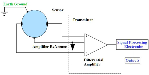 在典型的脈沖直流磁力計中,流量信號連接到差分放大器,該差分放大器與變送器外殼電氣隔離。接地過程為該差分放大器提供了穩定的參考。