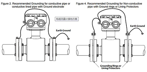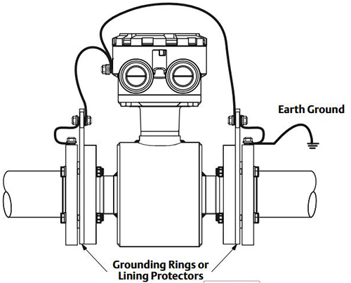 如前圖所示,當靠近氫硫酸流量計的管道不能提供良好的流體電連接時,需要接地環或接地電極。也就是說,管道內襯或由非導電材料制成。