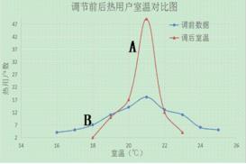 我公司在該小區管網改造前,在不同單元不同樓層分別安裝100臺室溫采集器。智能蒸汽流量計調前數據采集于2017~2018年供熱期,調后數據采集于2018~2019年供熱期。經過兩個采暖期,共有96臺室溫采集器可以正常提供數據。數據分析結果見圖3所示。