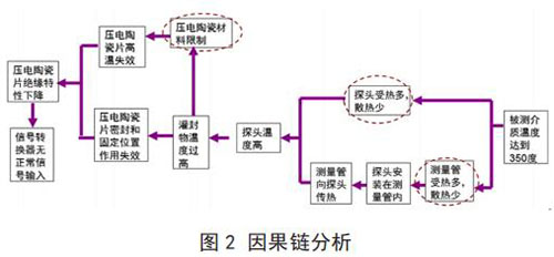 問題關鍵點:探頭安裝在測量管內,探頭與高溫介質及測量管直接接觸,受熱量多,而使壓電陶瓷片失效。