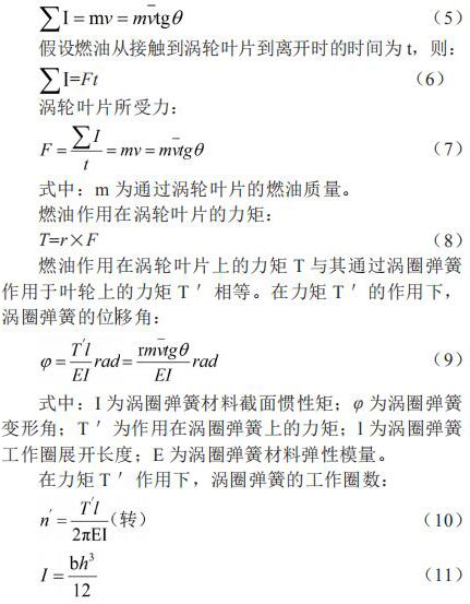 假設渦輪固定不動,燃油流過渦輪的葉片時將受到阻力,則當燃油離開渦輪的葉片時,將產生一個切向動量 mv,這個動量即為渦輪獲得沖量 。
