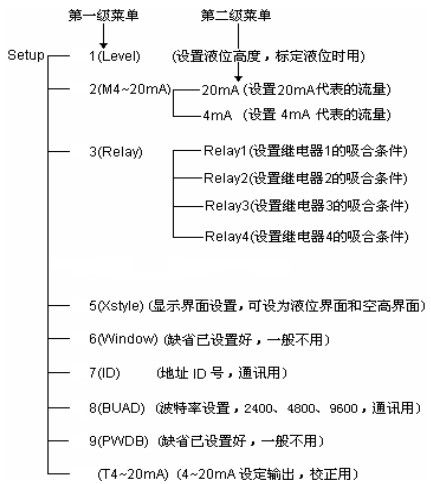 菜單結構如下,共分二級菜單,按擊【OK】鍵進入下級菜單,按擊【Mode】鍵返回上級菜單