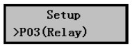 1) 在儀表正常工作時按擊Mode鍵進入參數設置菜單后按擊▼鍵選擇到P03(Relay)繼電器設置菜單,如右圖所示。