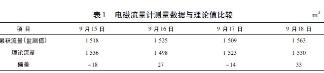 生活污水流量計價格與V錐流量計都適用于環境較惡劣的場合。在測量精度上,V錐流量計要比生活污水流量計價格高,而且安裝更靈活,對上、下游直管段的要求很短,但V錐流量計要比生活污水流量計價格昂貴得多。生活污水流量計價格的測量精度雖不及V錐流量計,但在此應用中完全可以滿足要求,而且運行穩定性和流量數據準確度也很好。表1是使用生活污水流量計價格對園區某個企業監測點連續4天的累積流量監測數據與理論流量的對比。